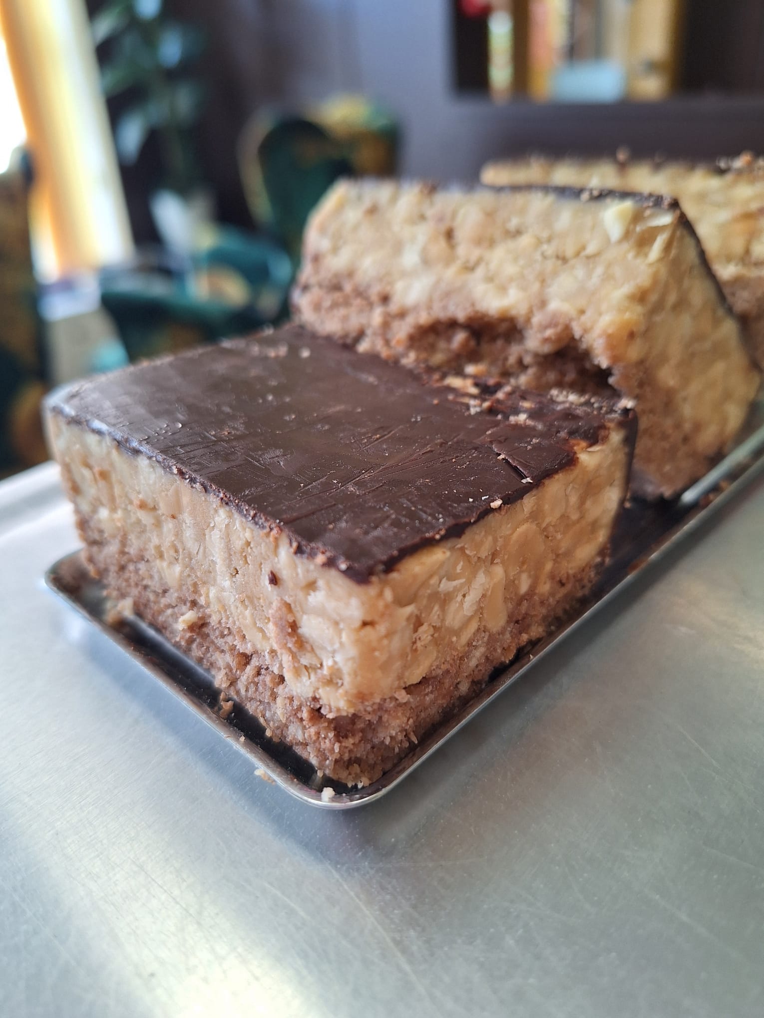SKŁAD: orzeszki arachidowe, masło orzechowe (bez cukru i bez oleju palmowego), mąka kokosowa, margaryna cukiernicza roślinna 80%, erytrytol, esencja karmelowa, gorzka czekolada